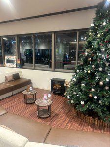 間もなく冬の訪れ!ということでロビーに暖炉とクリスマスツリーを飾りました♪